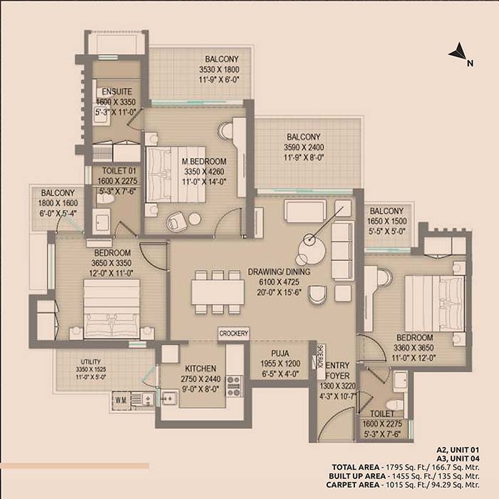 Spread across 6.25 acres*, the development will feature 3 iconic high-rise towers*, each rising up to Ground + 33 floors*, offering impressive views of green surroundings and the well-planned Wave City township. The tentative apartment sizes range from 2200–2400 sq.ft., 2600–2800 sq.ft., to 3400–3600 sq.ft.*, making it ideal for families who prefer expansive and thoughtfully designed living spaces. Each apartment is planned to maximize natural light, ventilation, and modern interiors for a refined lifestyle experience.